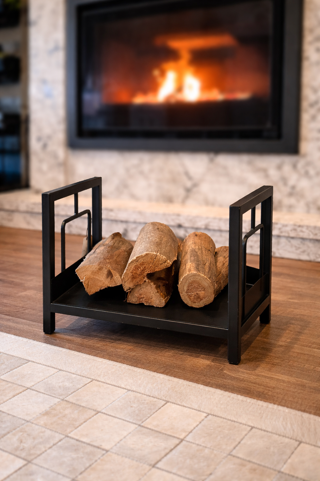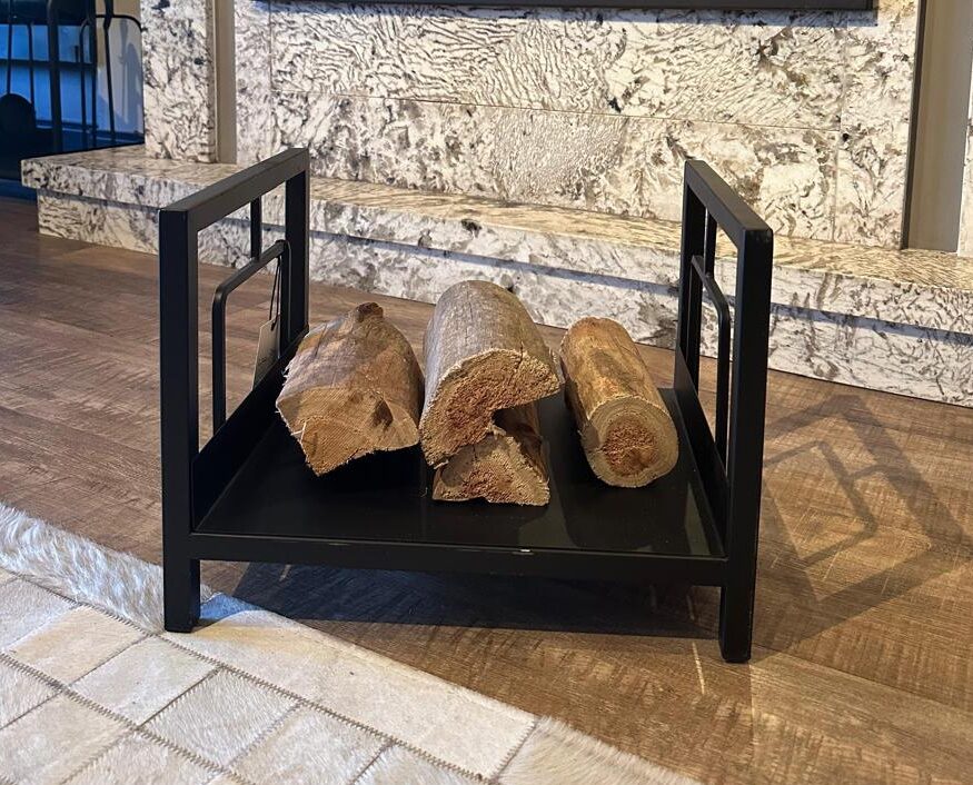 O cesto para lenha, ou porta lenha, é ideal para organizar as lenhas próximas à lareira/fogão, facilitando o processo de alimentação do aquecedor.