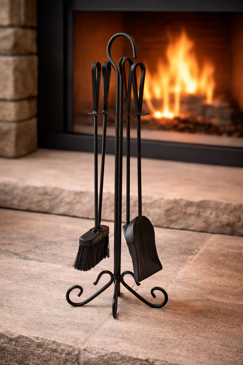 O kit de limpeza é um utensílio essencial para a praticidade de alimentação e limpeza da lareira.